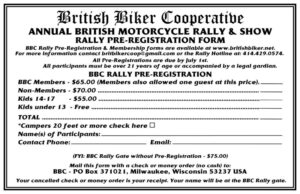 The British Biker Cooperative Rally and Show is a tiny event compared to enormous events like Daytona Bike Week and Sturgis, and that’s the way the event planners and participants like it. It is well-organized, laid back, and easy-going with no traffic jams, no crowd control problems, and no tensions—just motorcycles and friendly people.